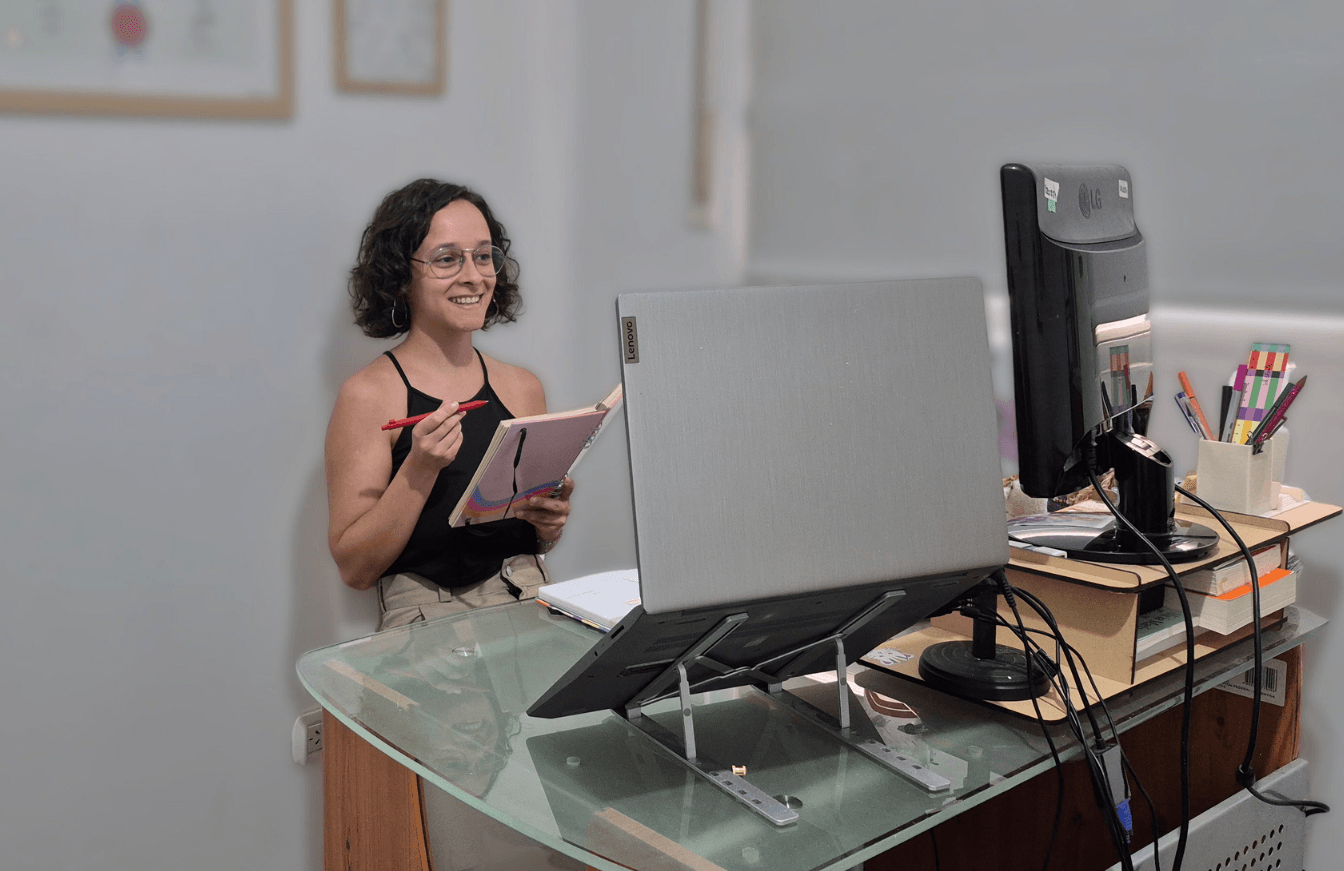 En 2014 elegí ingresar a la carrera de Profesorado en Letras en mi amada Universidad Nacional de Rosario y me enamoré completamente de la gramática y la lingüística. En 2016, empecé a dar clases particulares a estudiantes de secundaria, pero en el 2020 cursé mi residencia docente en plena pandemia y para mi horror comencé a cuestionarme si realmente quería ser profesora de escuela secundaria. Sentía que no era lo mío, aunque sabía que mi pasión seguía siendo enseñar.
